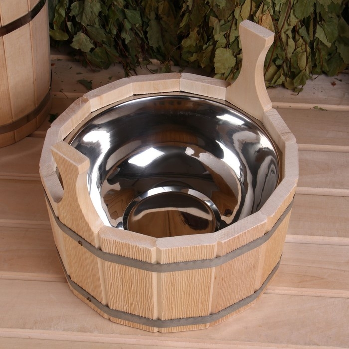 Шайка-таз из липы, 5 л, двуручная, нержавеющая вставка