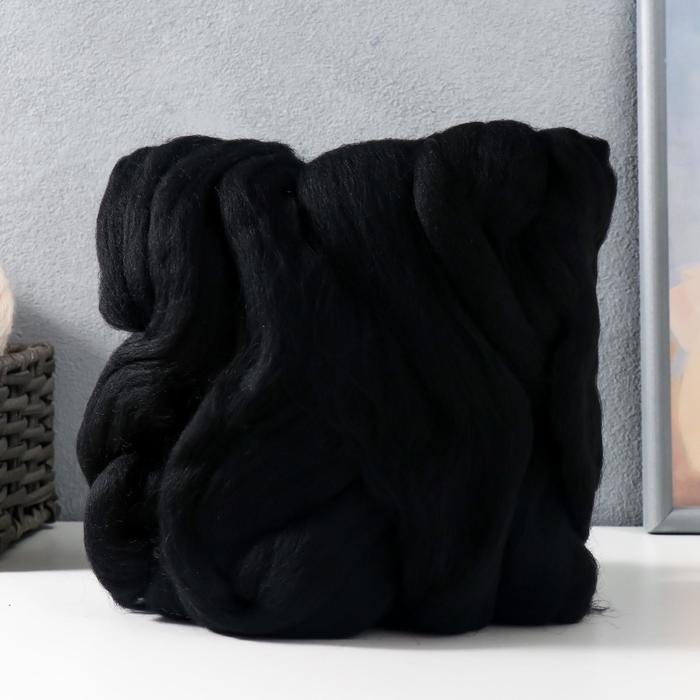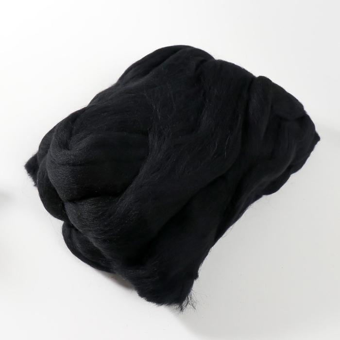 Шерсть для валяния 100% полутонкая шерсть 100гр (02 черный)