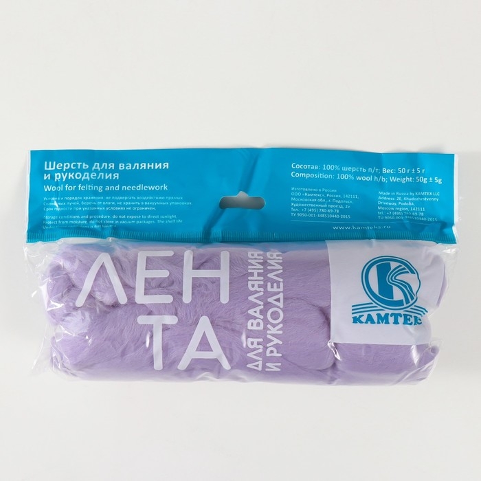 Шерсть для валяния 100% полутонкая шерсть 50 гр (072 лаванда)