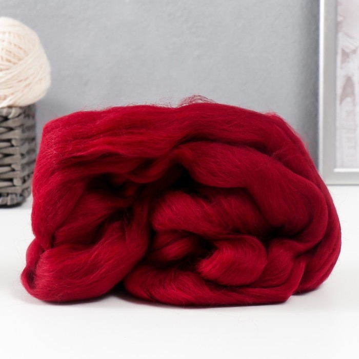 Шерсть для валяния 100% полутонкая шерсть 50 гр (091, вишня)