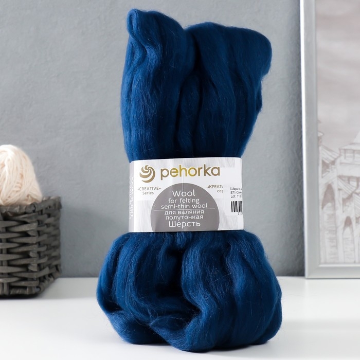 Шерсть для валяния 100% полутонкая шерсть 50гр (571-Синий)