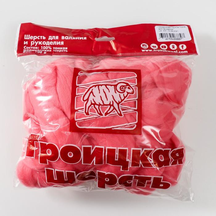 Шерсть для валяния 100% тонкая мериносовая шерсть 100гр (324 светлая азалия)