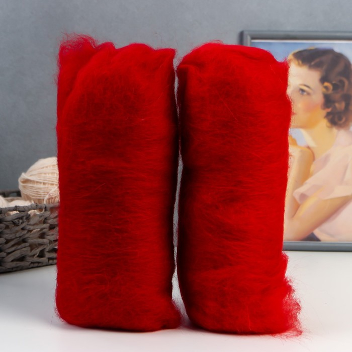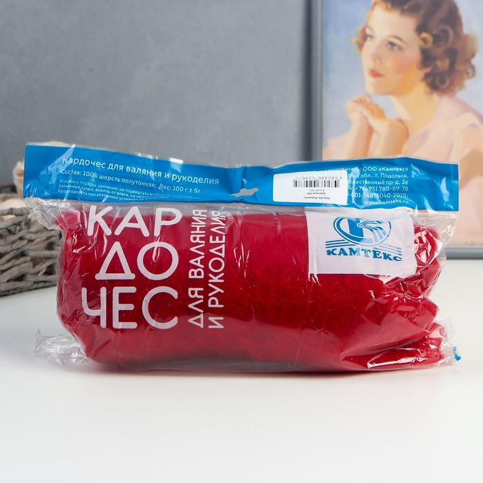Шерсть для валяния "Кардочес" 100% полутонкая шерсть 100гр (046 красный) МИКС