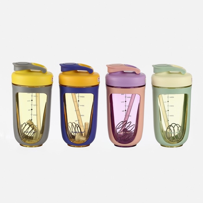 В комплекте пластиковый шарик-венчик, что позволяет взбить коктейль без комочков.