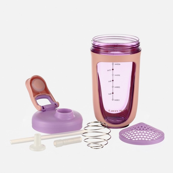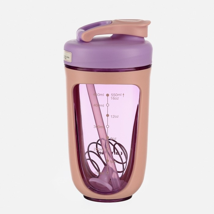 Шейкер спортивный с чашей под протеин, голубо-розовый, 500 мл