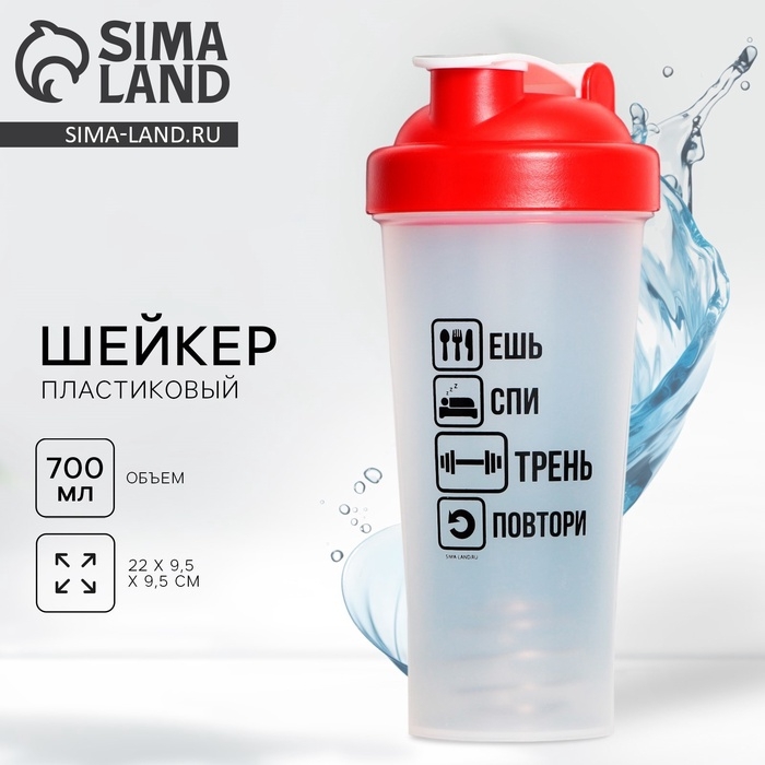 Шейкер пластиковый «Ешь, спи, трень», 700 мл