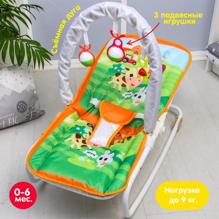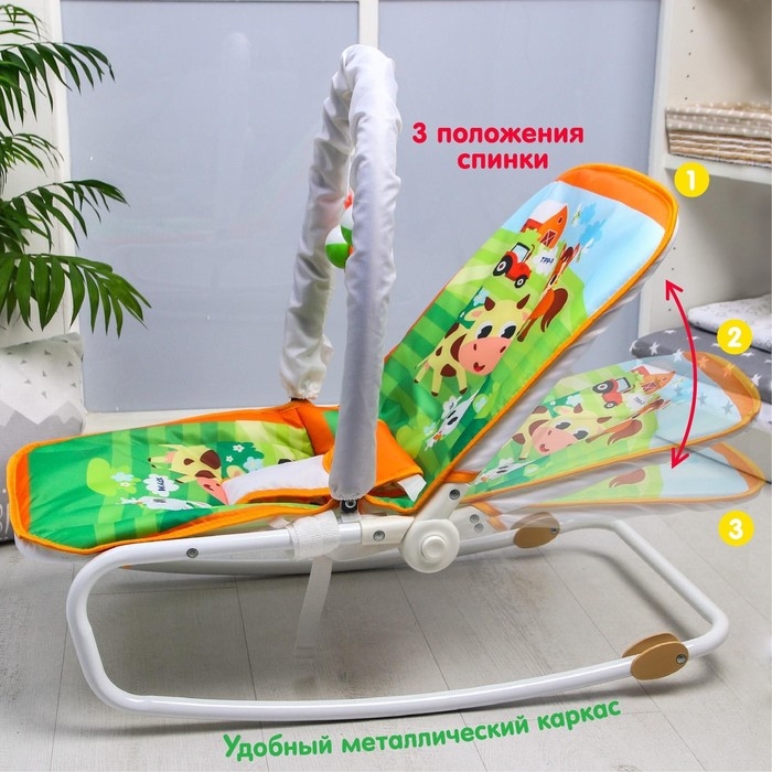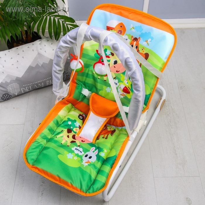 Шезлонг-качалка для новорождённых «Домашние животные», игровая дуга, съёмные игрушки МИКС