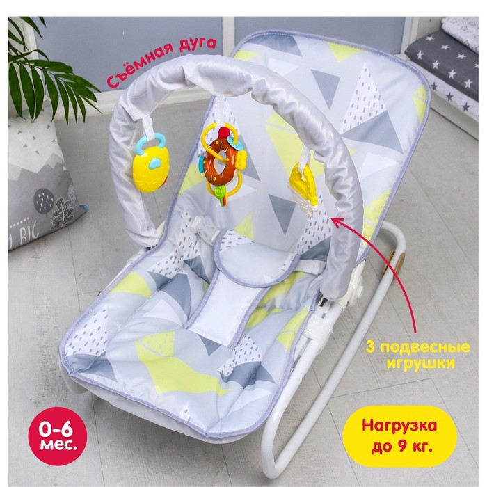 Шезлонг - качалка для новорождённых «Геометрия», игровая дуга, игрушки МИКС