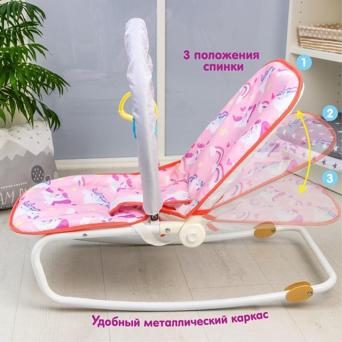 Шезлонг - качалка для новорождённых «Волшебная пони», игровая дуга, игрушки МИКС