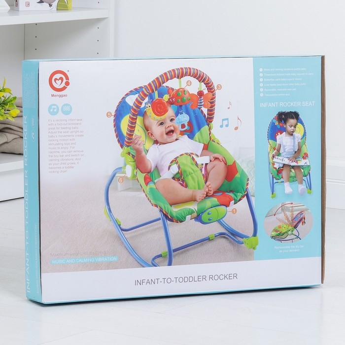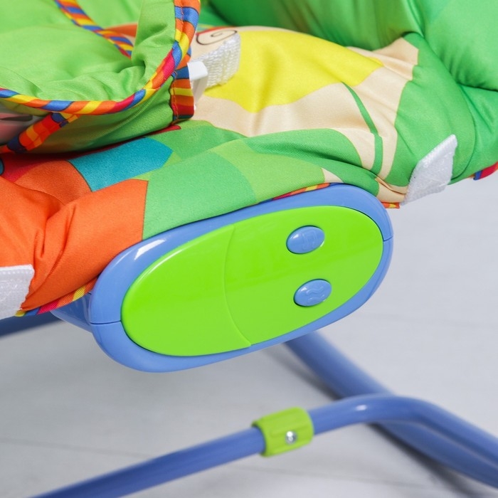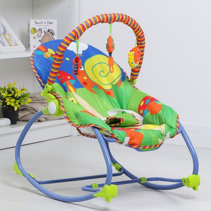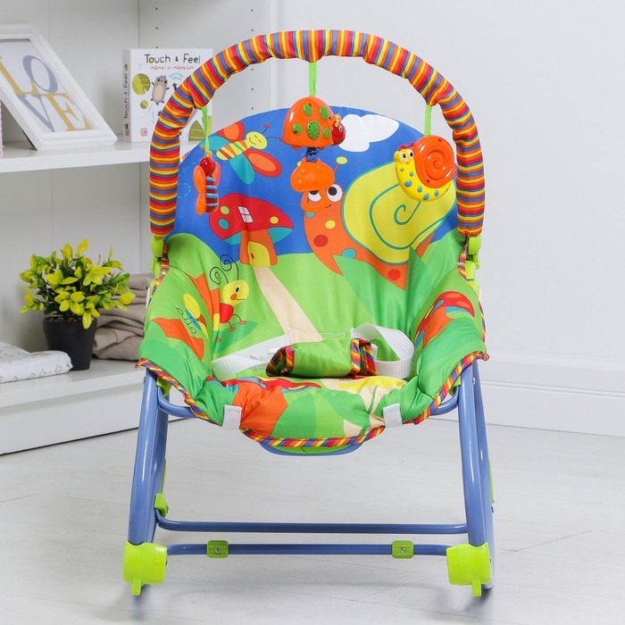 Колыбель оснащена ремнями безопасности, полозьями для качания, а так же игрушками.