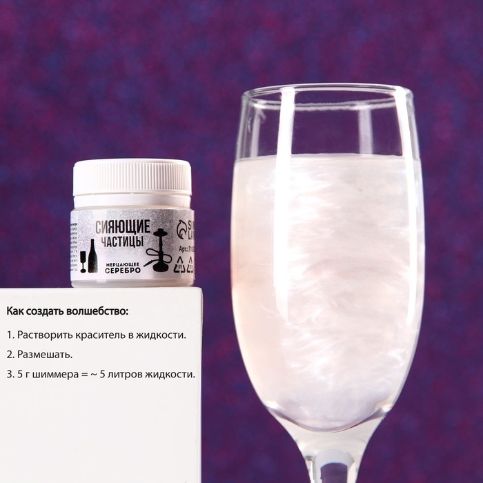 Шиммер для напитков и кальяна «Мерцающее серебро», 5 г.