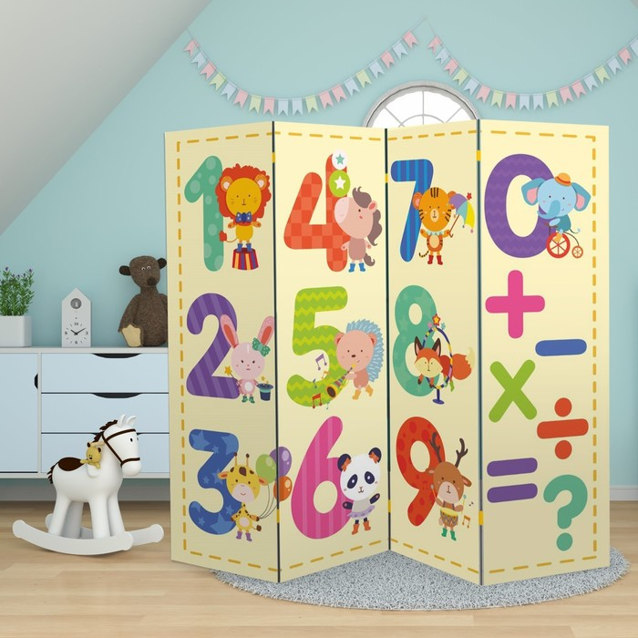 Ширма "Цифры и зверята", 200 х 160 см