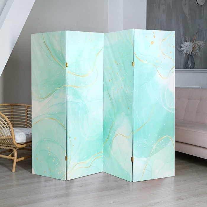 Ширма "Мрамор, мятная акварель, пастельный окрас", 200х160 см