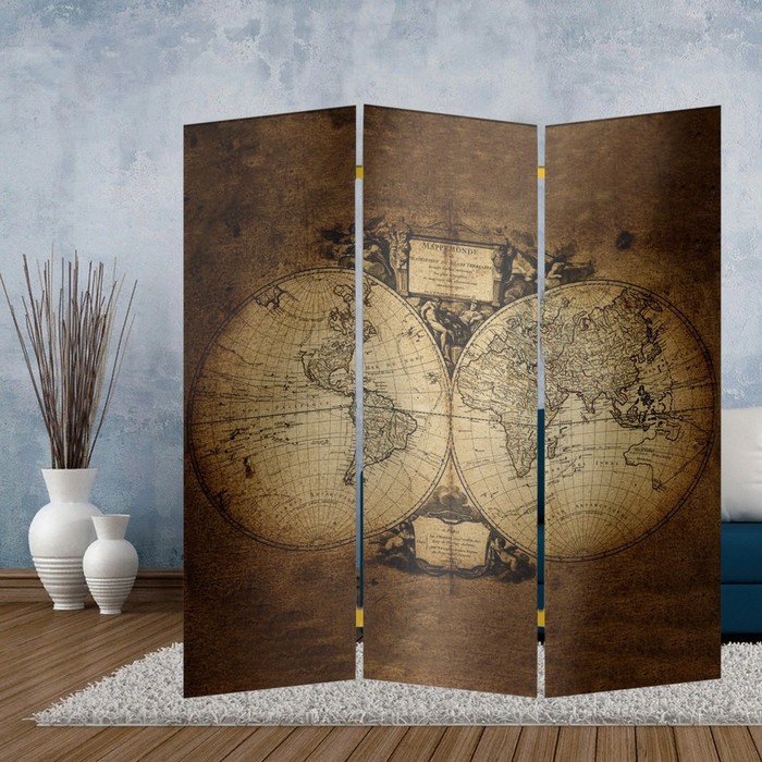 Ширма "Старинная карта мира", 150 х 160 см