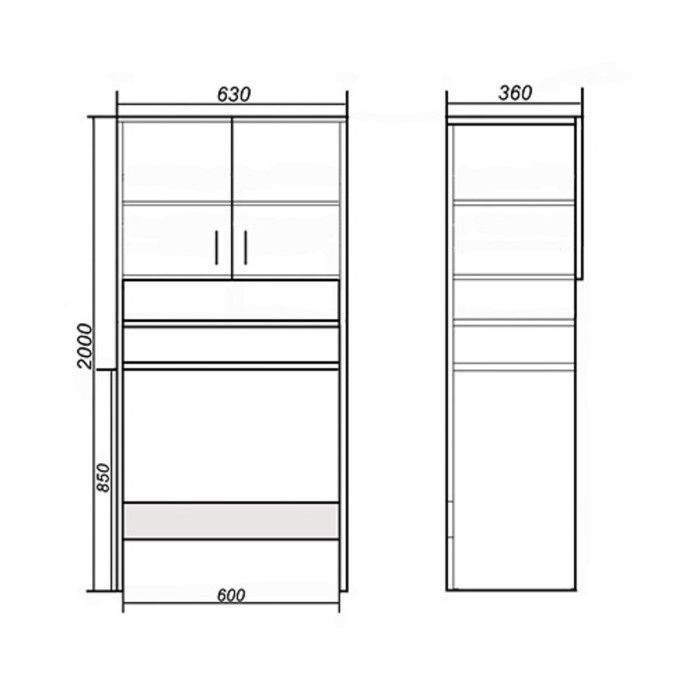 Шкаф для ванной комнаты "Комби 60", 63 х 36 х 200 см