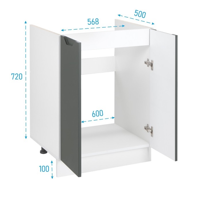 Шкаф напольный 600 под мойку Хельга, 600х500х824, Белый/Олива софт МДФ