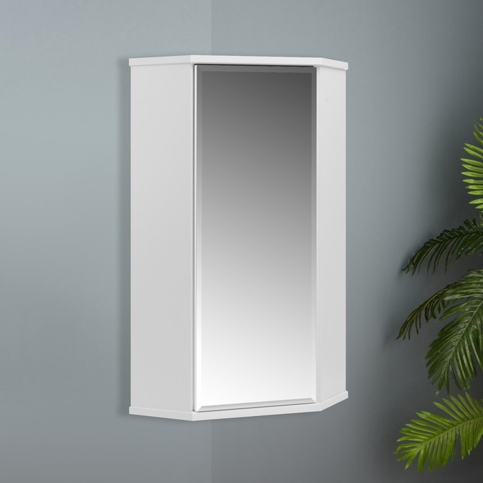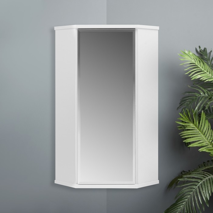 Шкаф навесной для ванной комнаты угловой "ПШ" с зеркалом, 48 х 34 х 73 см