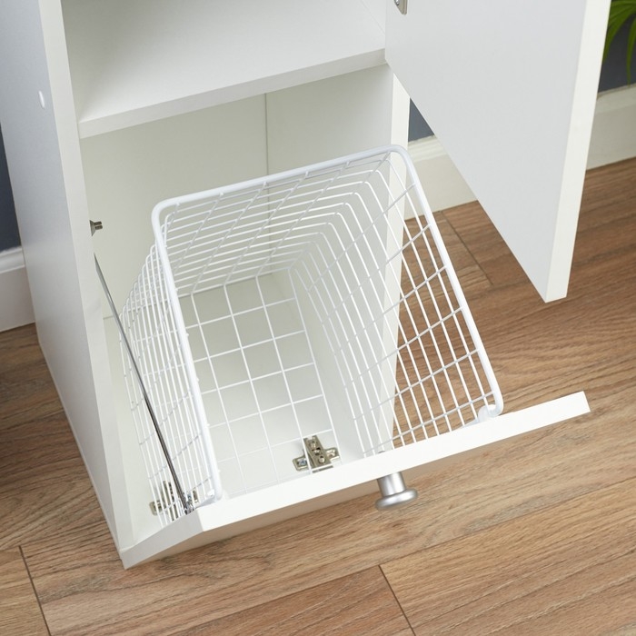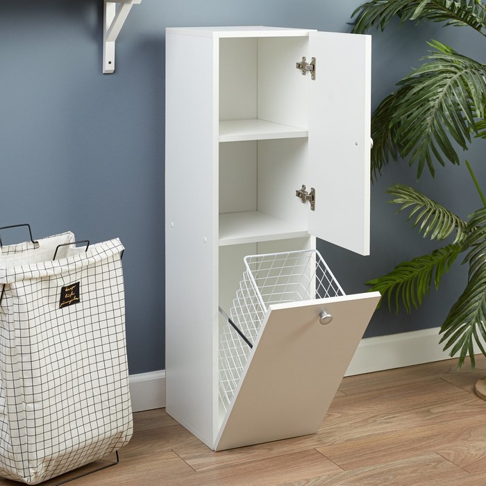 Шкаф-Пенал для ванной комнаты с корзиной, 30 х 34 х 113,4 см