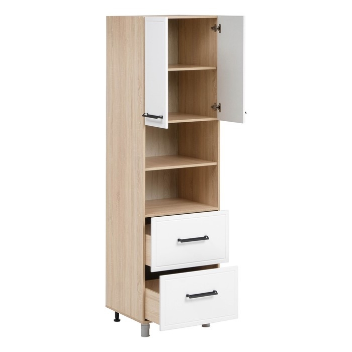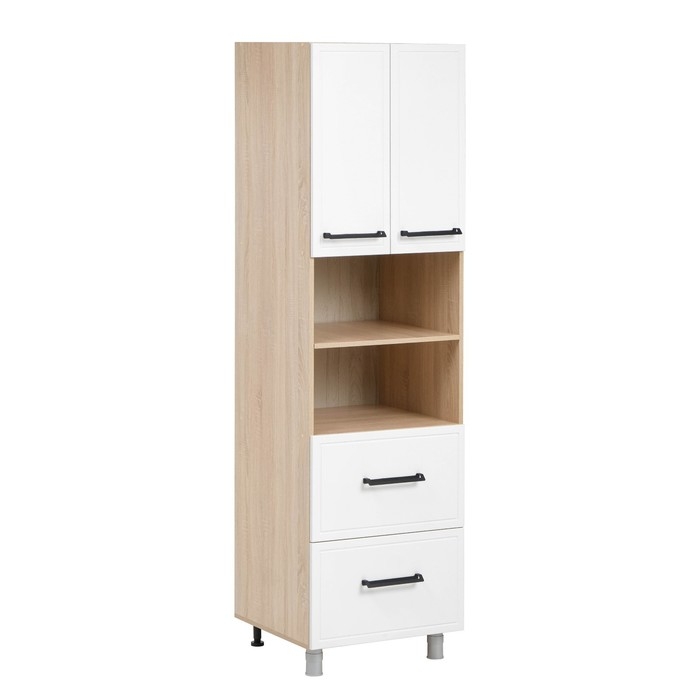 Шкаф-пенал под технику напольный Квадро, 600х565х2150, Дуб сонома/Нубук Милк