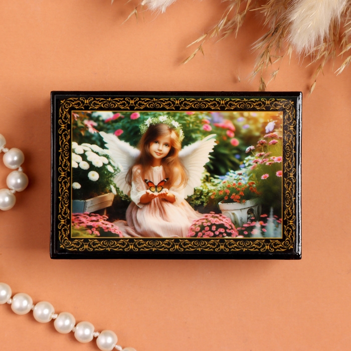 Шкатулка «Ангел с бабочкой», черная, 6×9 см, лаковая миниатюра