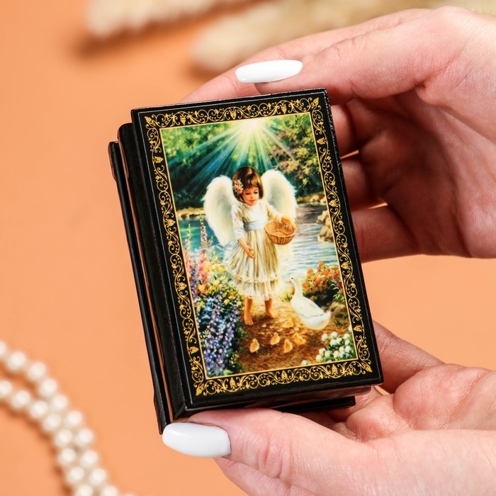 Шкатулка «Ангелочек с птичками», 6×9 см, лаковая миниатюра
