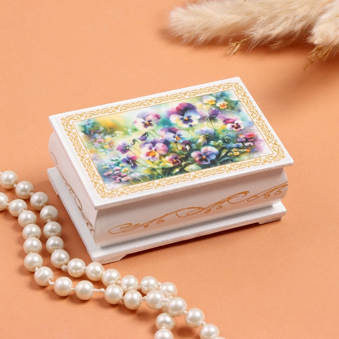 Шкатулка «Анютины глазки», белая, 6×9 см, лаковая миниатюра