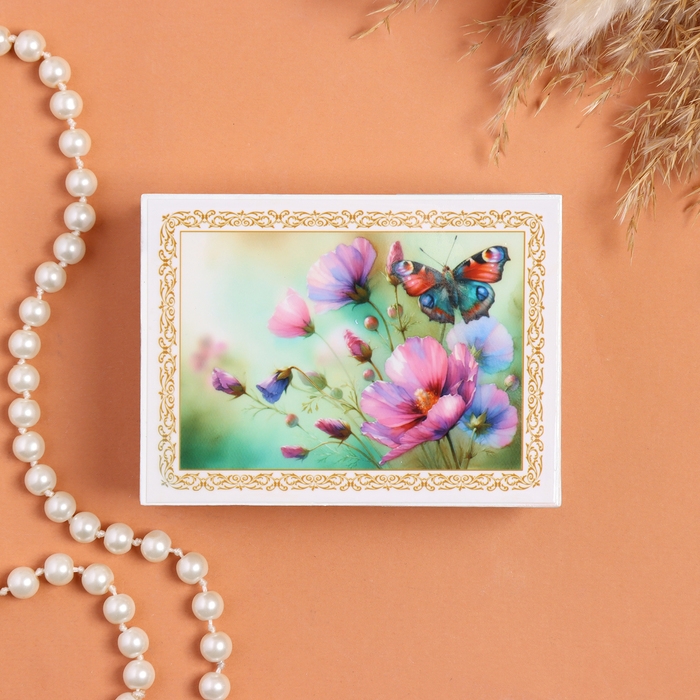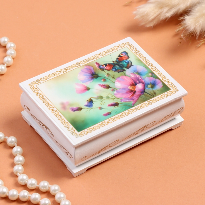 Шкатулка «Бабочка и цветок», белая, 8×10,5 см, лаковая миниатюра