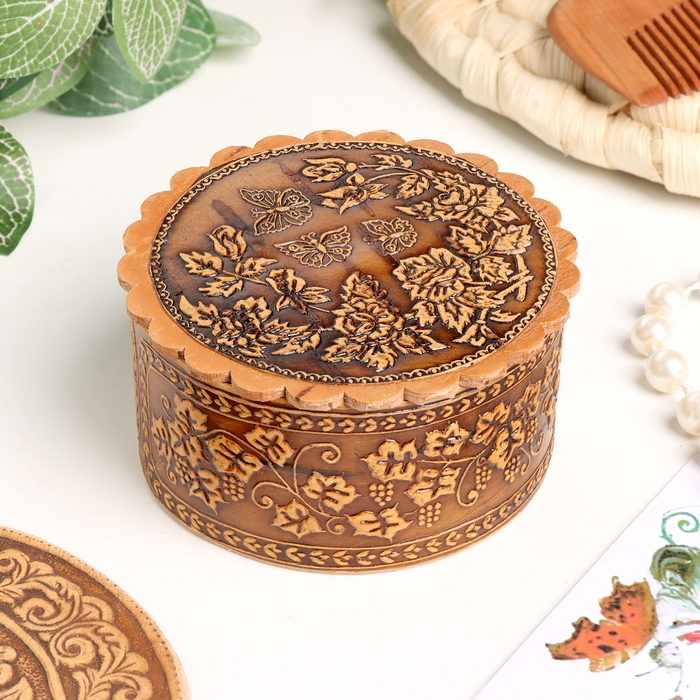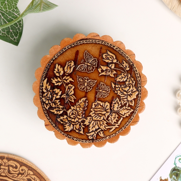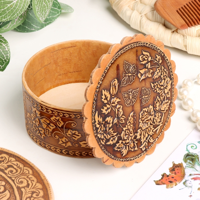 Шкатулка "Бабочки над цветами", 70 х 35 мм, береста