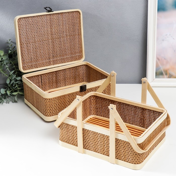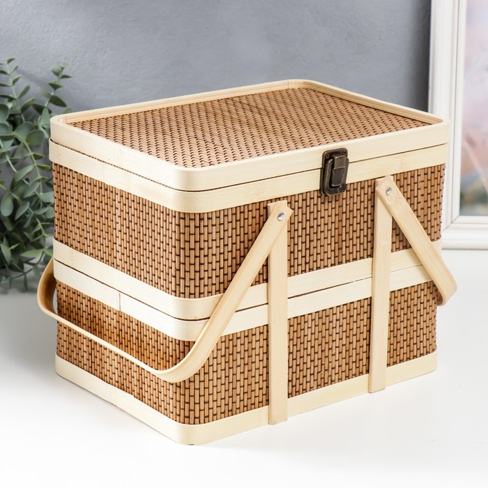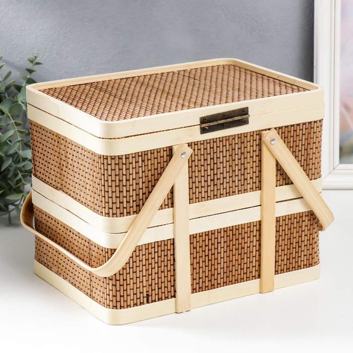 Шкатулка бамбук 2в1 "Прямоугольная" с ручками 20х20х26 см