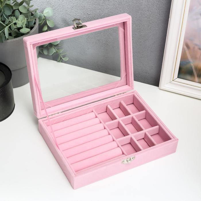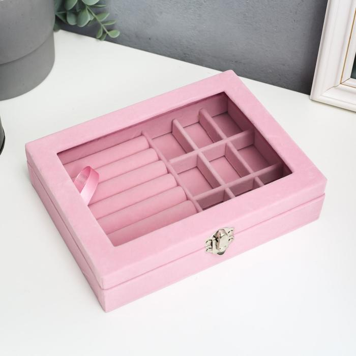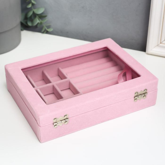 Шкатулка бархат для украшений "Розовая пастила" 4,5х20х15 см