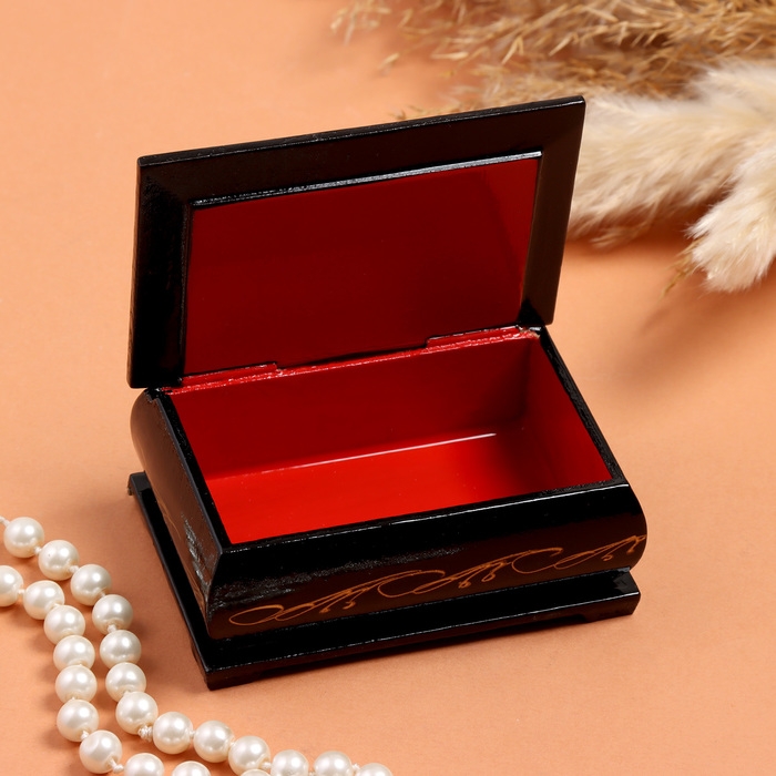 Шкатулка «Букет пионов в корзине», черная, 6×9 см, лаковая миниатюра