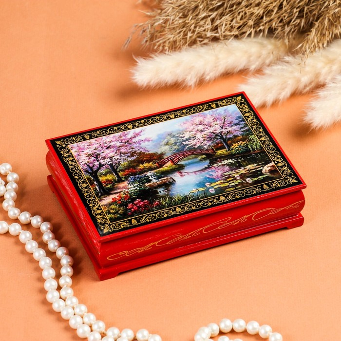Шкатулка «Цветение сакуры», красная, 10×14 см, лаковая миниатюра