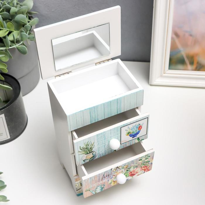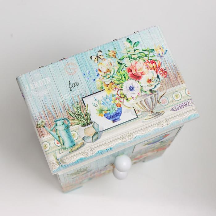 Шкатулка дерево 3 ящика "Букет в античной вазе" 18,5х11,7х7,5 см