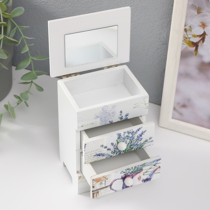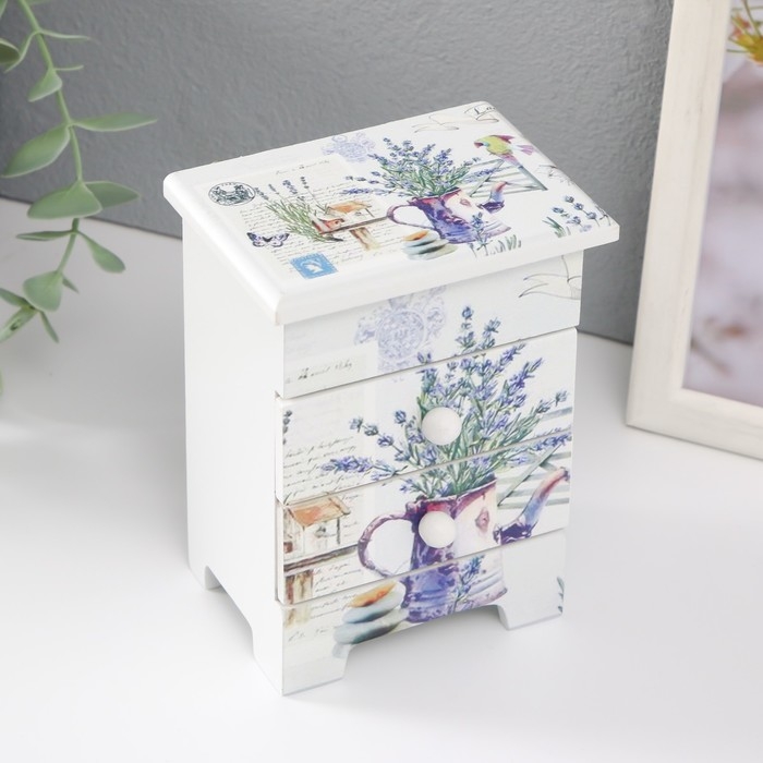 Шкатулка дерево 3 ящика "Кувшин с лавандой" 6,5х9х12 см