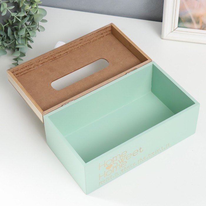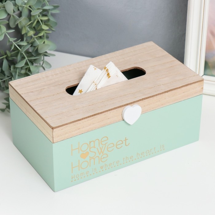 Шкатулка дерево для салфеток "Дом, милый дом. Сердечко" нежно-голубой 25х10,7х14 см