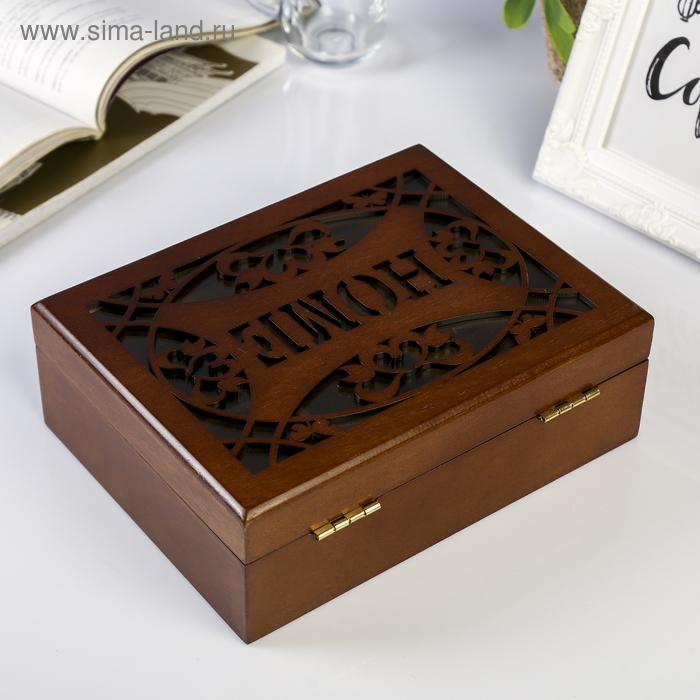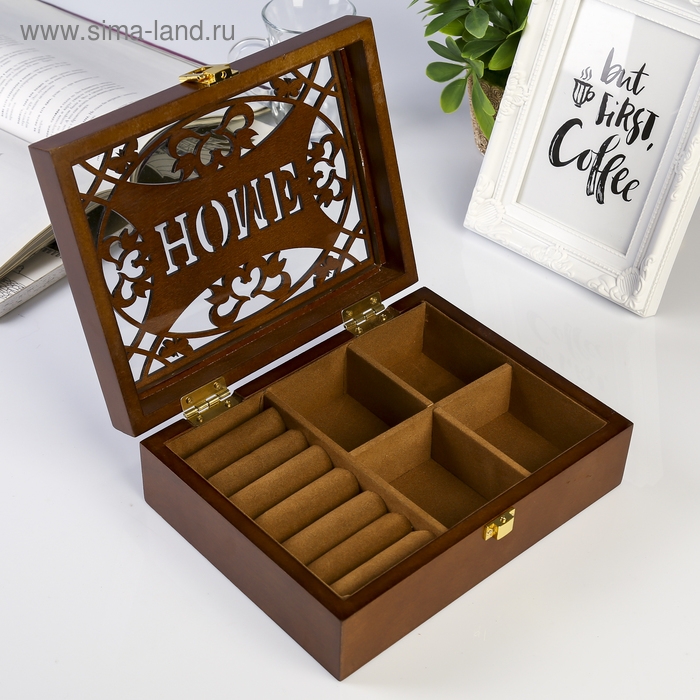Шкатулка дерево для украшений "Home" коричневая 7х17х21 см