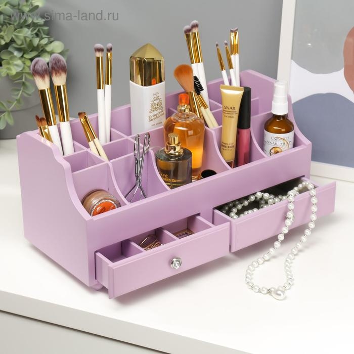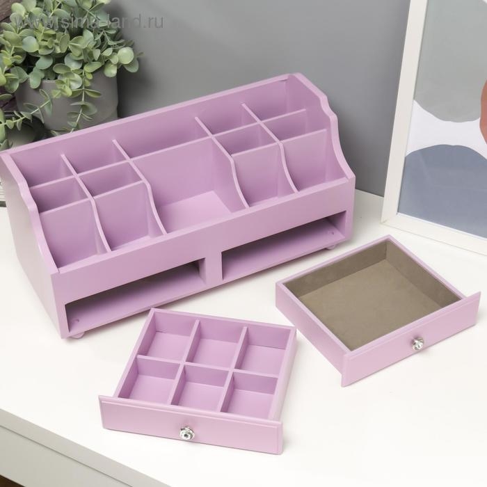 Шкатулка дерево для украшений и косметики 2 ящика нежно-сиреневая 35х16,5х17 см