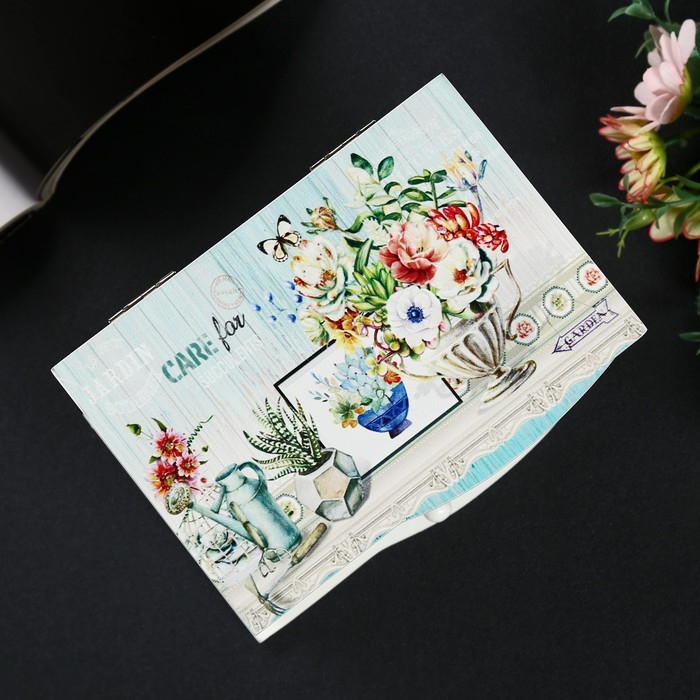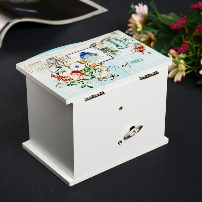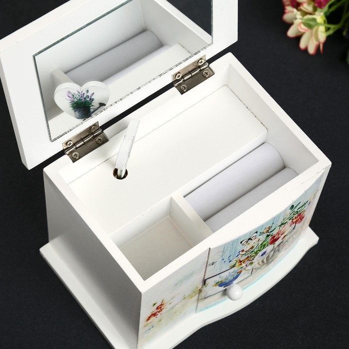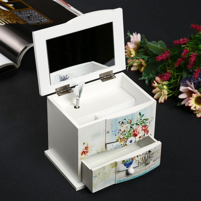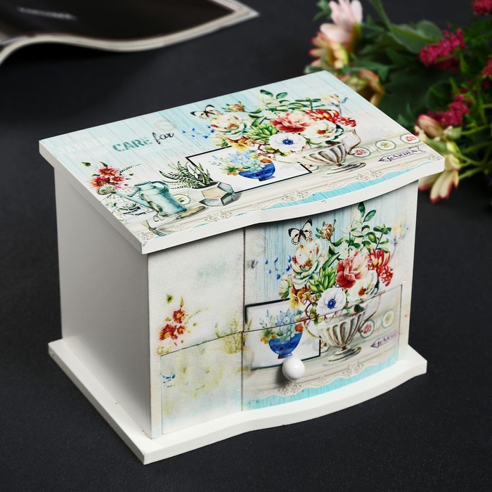 Шкатулка дерево комод 1 ящик музыкальная "Букет в античной вазе" 11х14,7х10,6 см