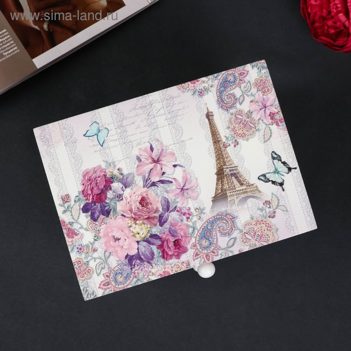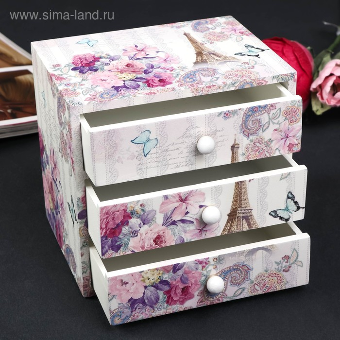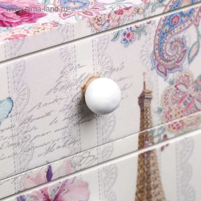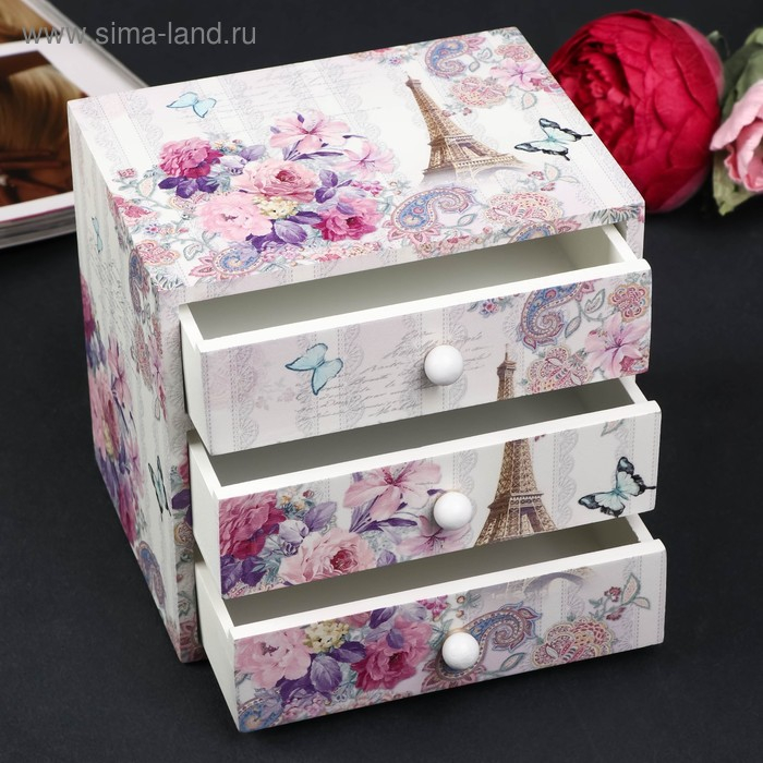 Шкатулка дерево комод 3 ящика "Эйфелева башня и букет цветов" 14,8х15,6х11,6 см