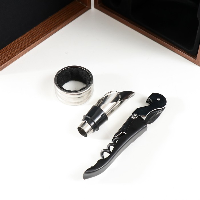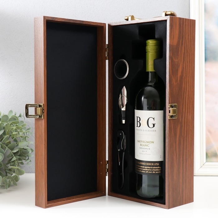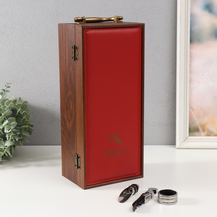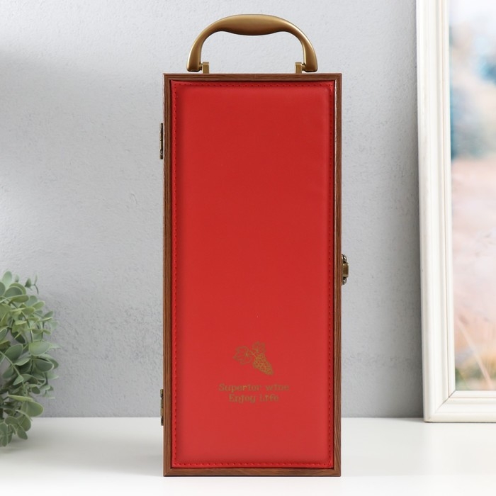 Шкатулка дерево, кожзам под бутылку "Виноград" красная 3 предмета 35х11х15,5 см