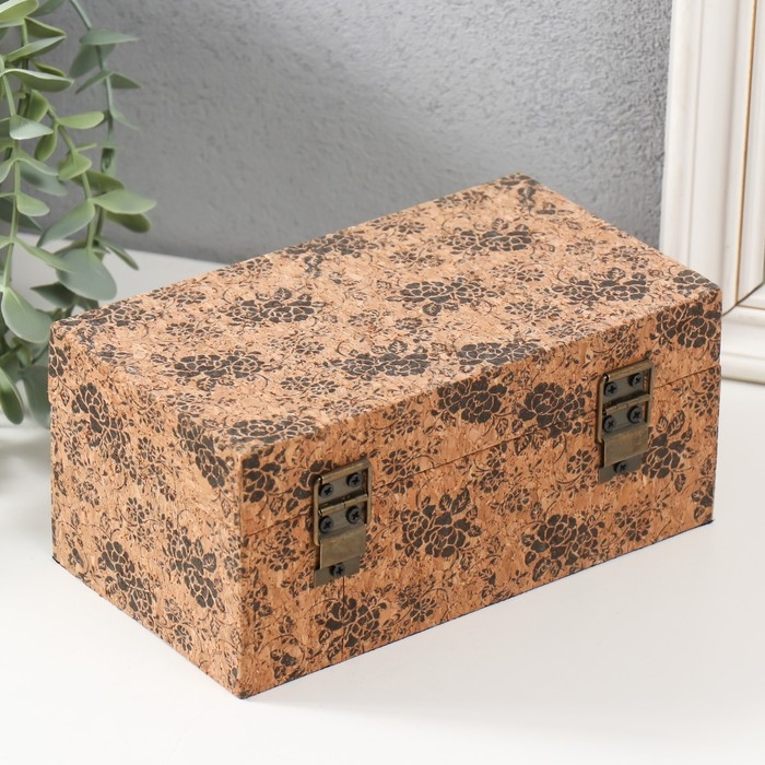 Шкатулка дерево кожзам под пробку "Цветочный фон" 18х10х8 см