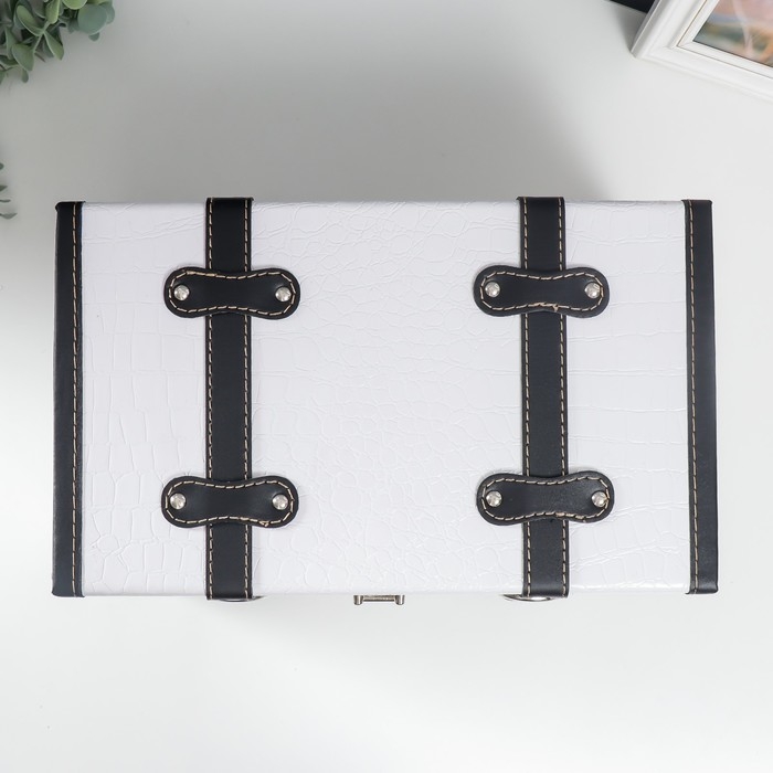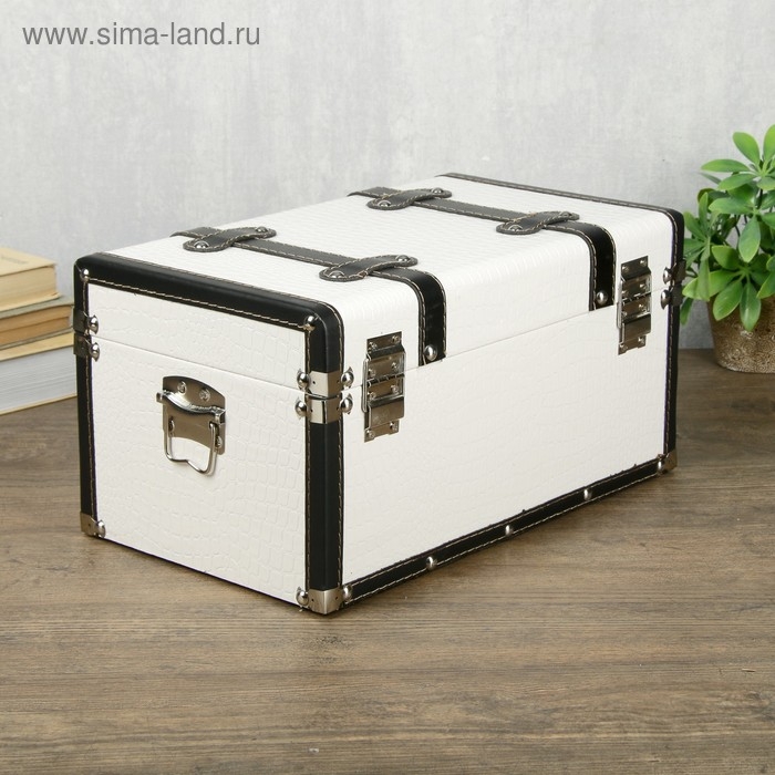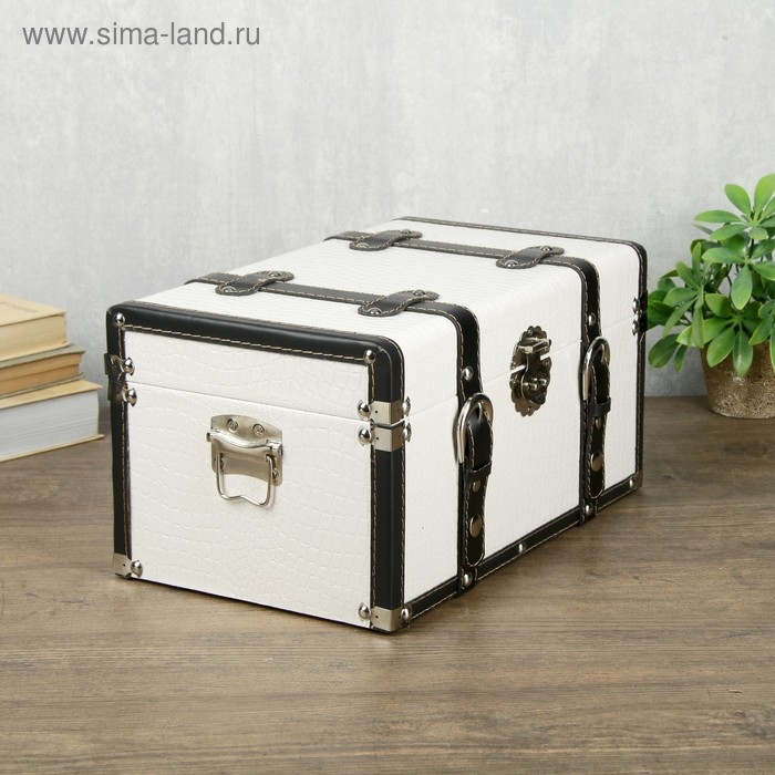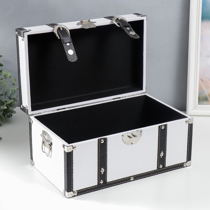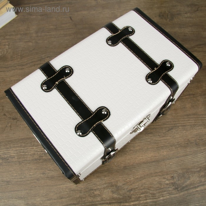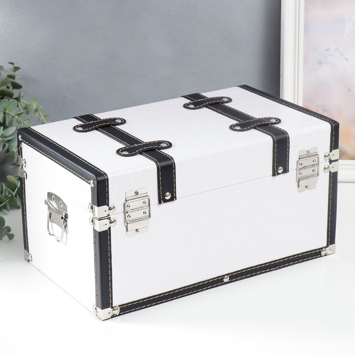 Шкатулка дерево кожзам "Сундук с ремнями" белый 19х21х35 см