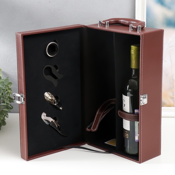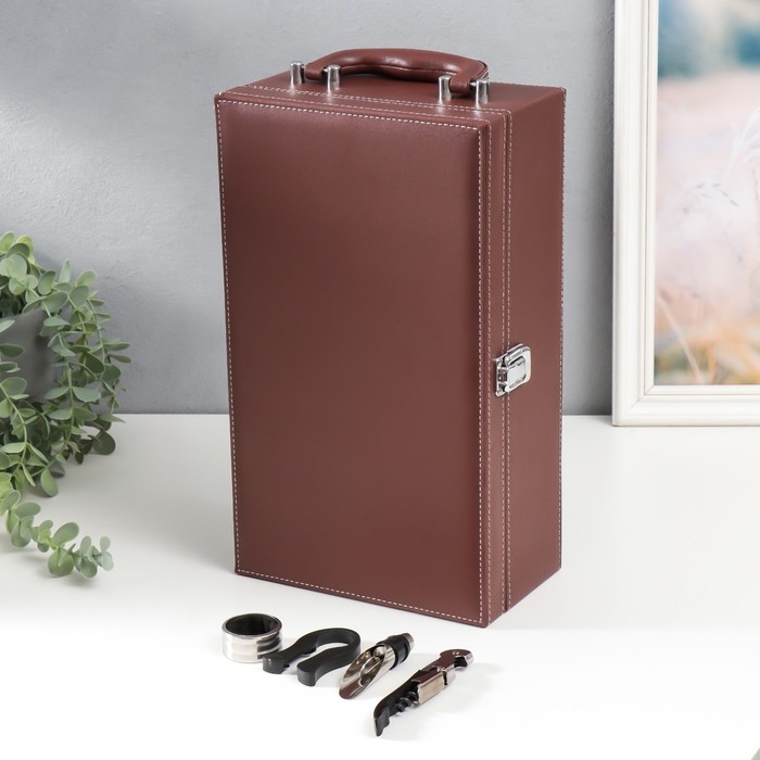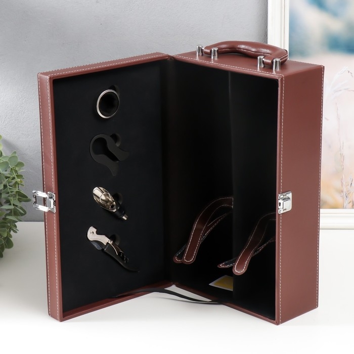 Шкатулка дерево под 2 бутылки "Джентльмен" коричневый 35,5х20х11,5 см