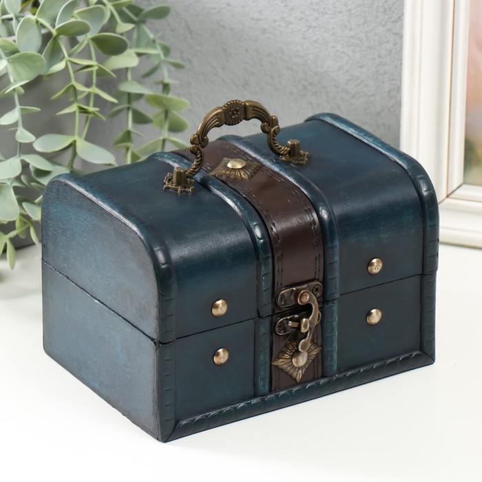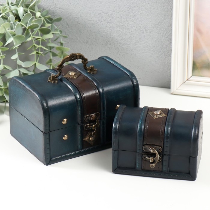 Шкатулка дерево "Ромб" набор 2 шт ярко-синяя 7,8х11,8х8 см 11х15,7х11,5 см