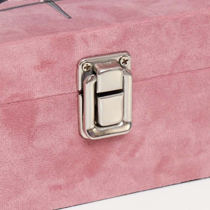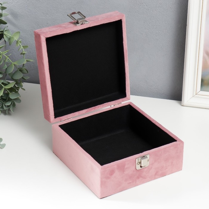 Шкатулка дерево "Розовый фламинго-цветок" бархат розовый 10х16х16 см