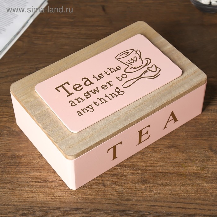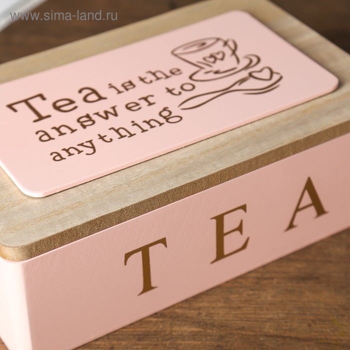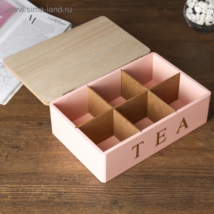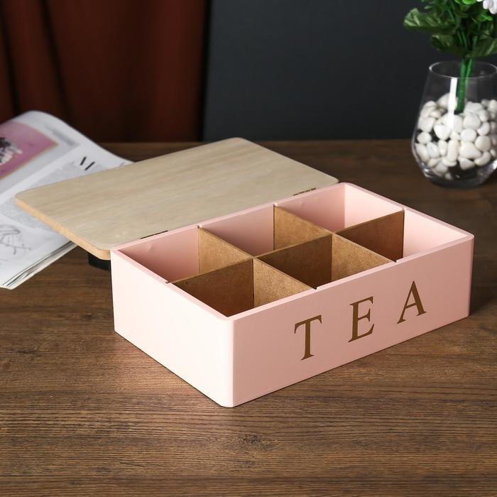Шкатулка дерево с делениями "Чайная" розовая с золотом 7,5х15х23 см