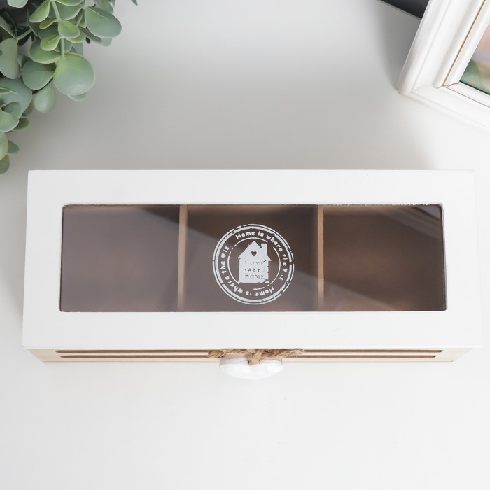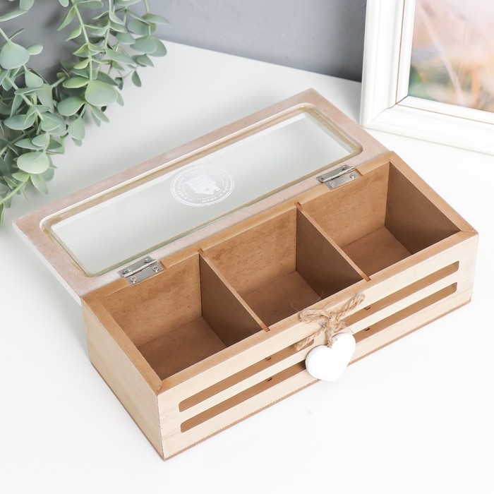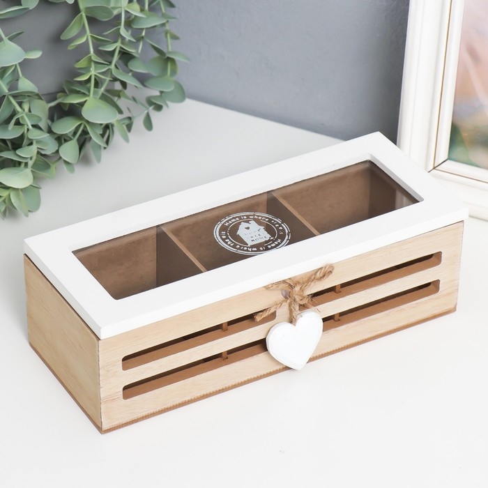 Шкатулка дерево с делениями "Сердечко на верёвке" 9,5х24х7 см