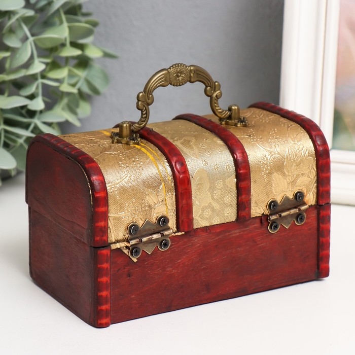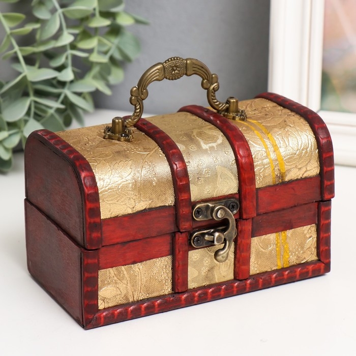 Шкатулка дерево сундучок с ручкой "Вьюнок"золото 8,4х14,5х8,7 см