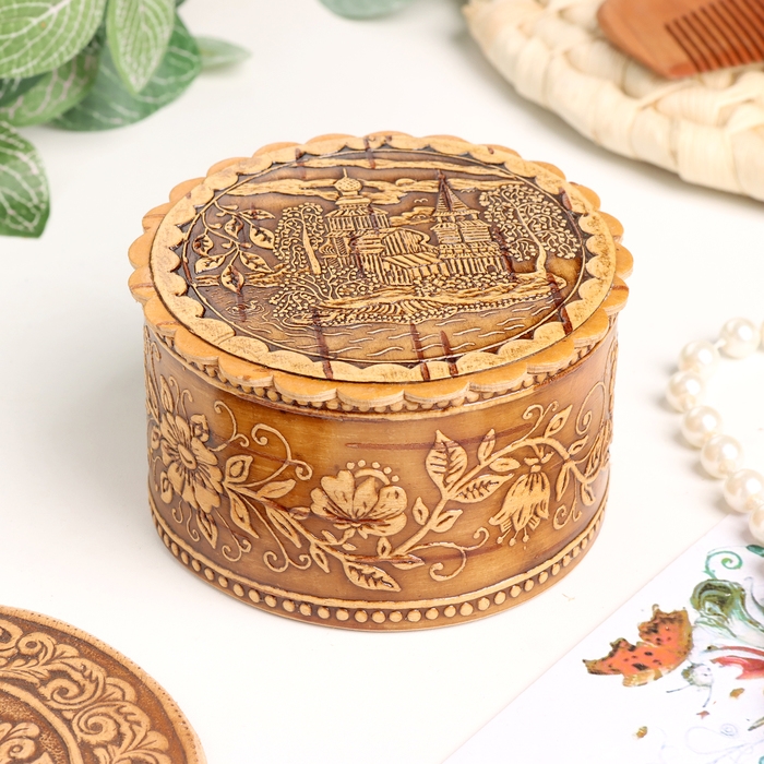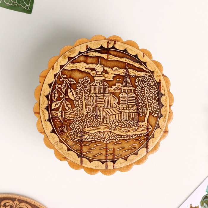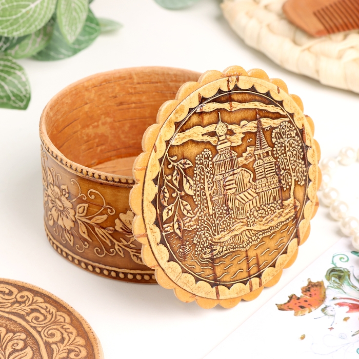 Шкатулка "Деревянная церковь" , 80 х 40 мм, береста