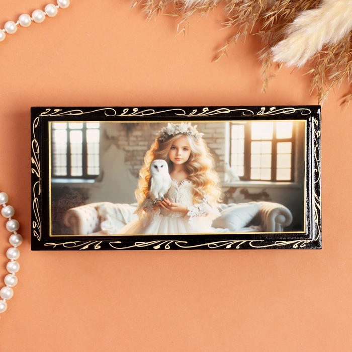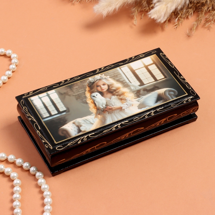 Шкатулка «Девочка с белой совой», черная, 8,5×17 см, лаковая миниатюра
